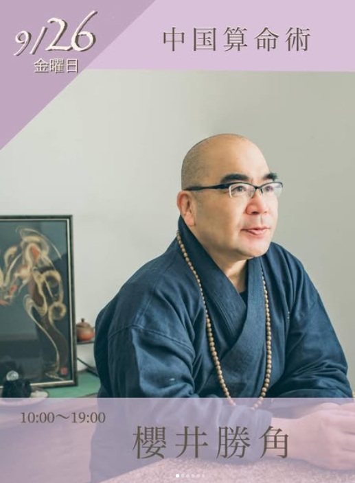 9/26(金)桜井勝角さんの中国占星術とオーラルリーディングを開催します。