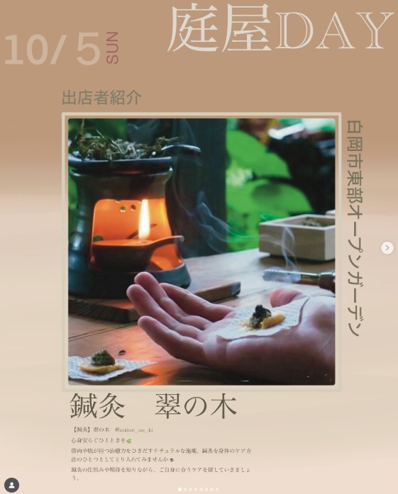 庭屋で鍼灸、耳ツボでもお馴染みの翠の木さんです。