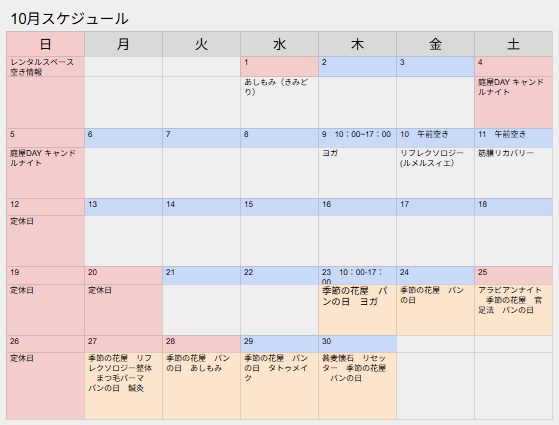 10/27 季節の花屋さん リフレクソロジー・整体 まつ毛パーマ パンの日 鍼灸