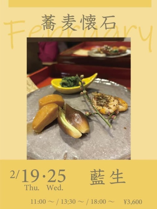 白岡の庭屋の自然に囲まれた庭で月に一度だけ開催される隠れた名店「藍生」で味わう、旬の蕎麦懐石です。1月からは月に2回の出店となりました。2月の食材は牡蠣とキウイです。旬の牡蠣🦪とキウイ🥝がどのようなお料理になるのかお楽しみ。