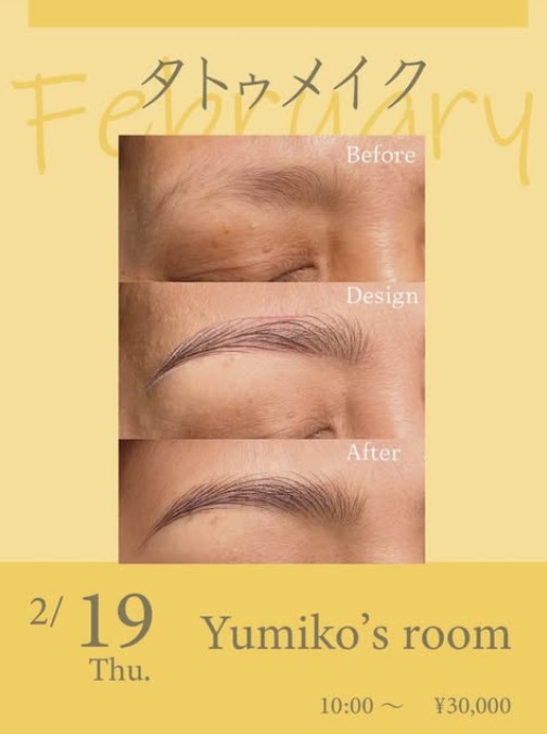 そんな願いを叶えてくれる、Yumiko’s roomさんによるタトゥーメイク(アートメイク)の開催が決定しました👏✨