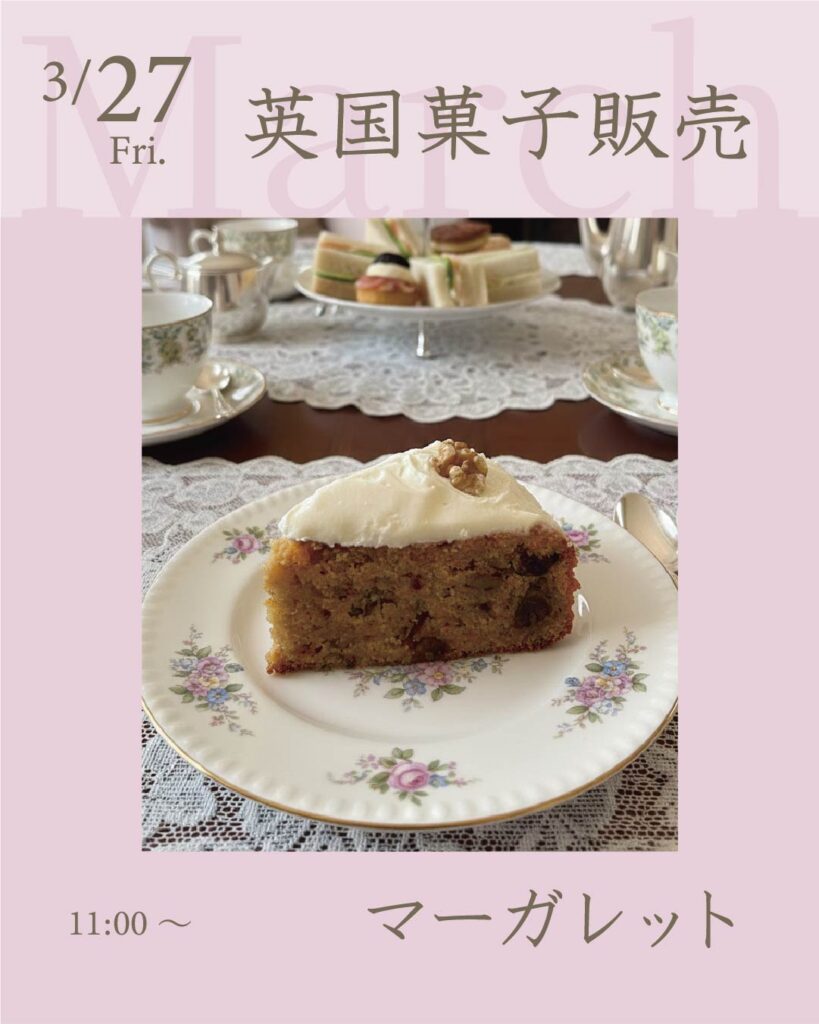 スパイスの香りとニンジンの甘みが広がる、マーガレットさんの人気菓子。しっとりとした生地とクリームチーズの相性が抜群です。