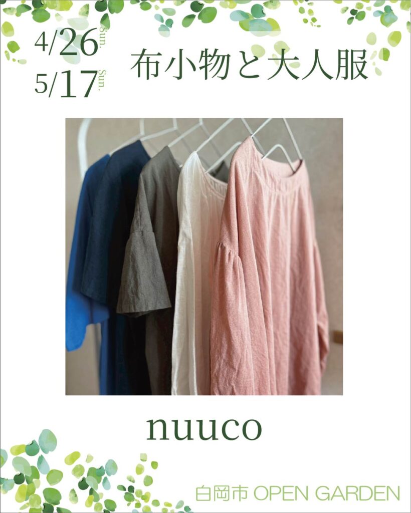 nuucoさん (服飾雑貨販売)4/26.5/17