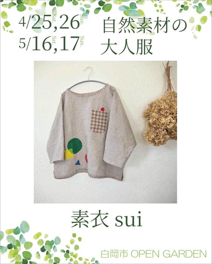 素衣さん (服飾雑貨販売)4/25.4/26.5/16.5/17