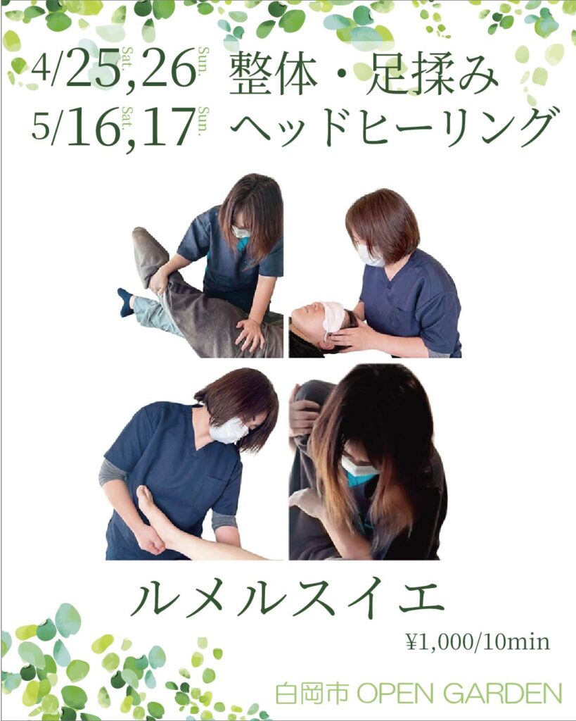 約30分 1000円 各回3名様 4/25 11:00~・12:00~・14:00~・15:00~