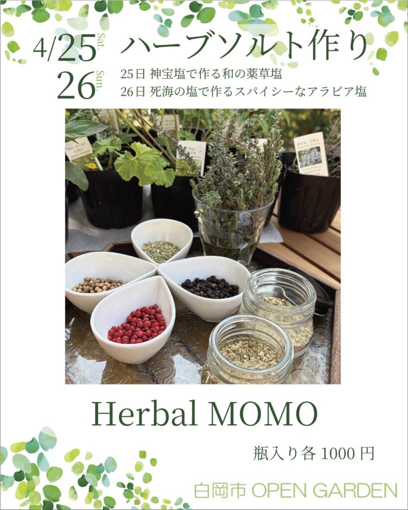 Herbal MOMOさん (ハーブソルト等作り)4/25.4/26.5/16