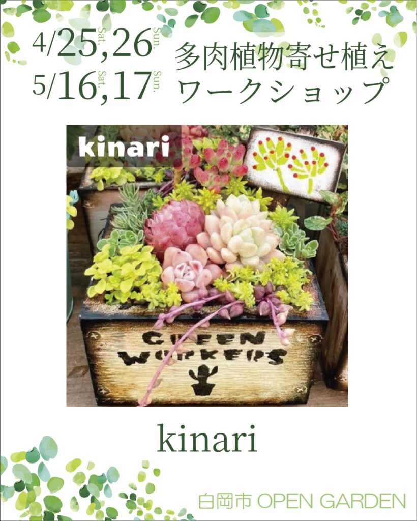 多肉寄せ植えワークショップは各回4名定員 4/25 10:00~・10:50~ 4/26 10:00~